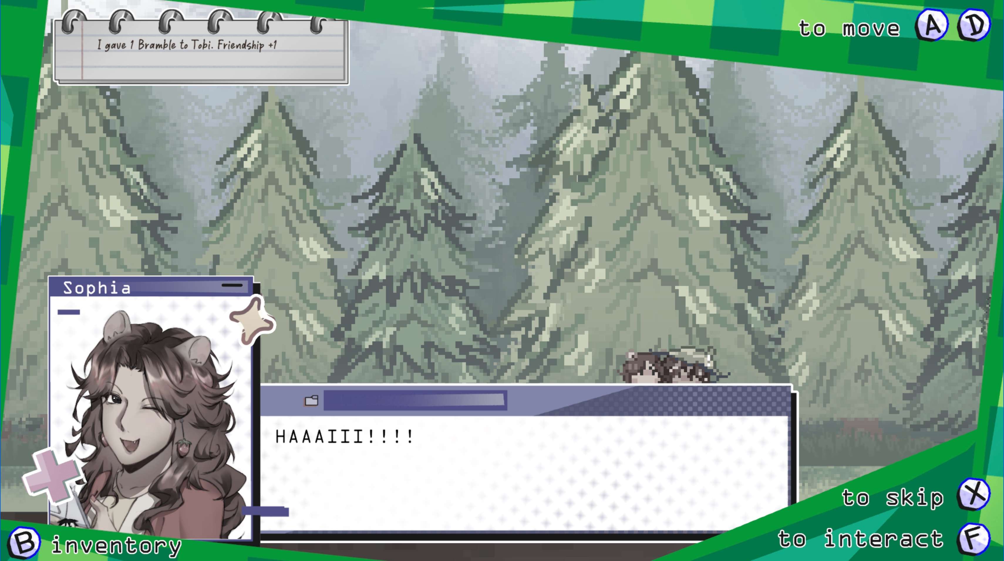 THIS. IS. SO. COOL!!! i would definitely play again. next time i should get all the friendship levels to 10 since i really only invested in timothy and uncle sanchez.. but great job for first time, vee!! i hope to play more of your games in the future (if you ever create more)!